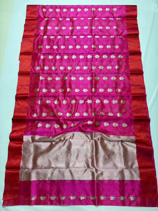 Fuchsia & Vermilion Zari Weave Chanderi Katan Silk Saree