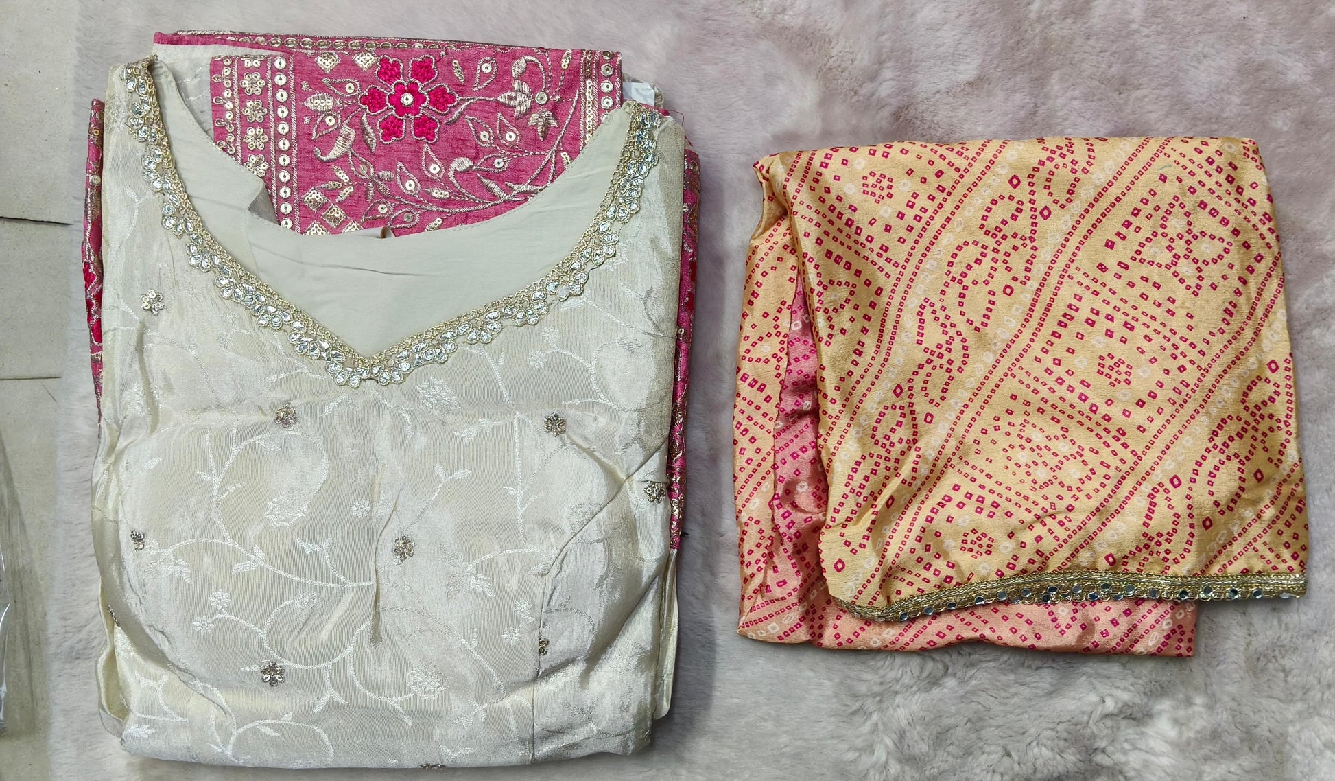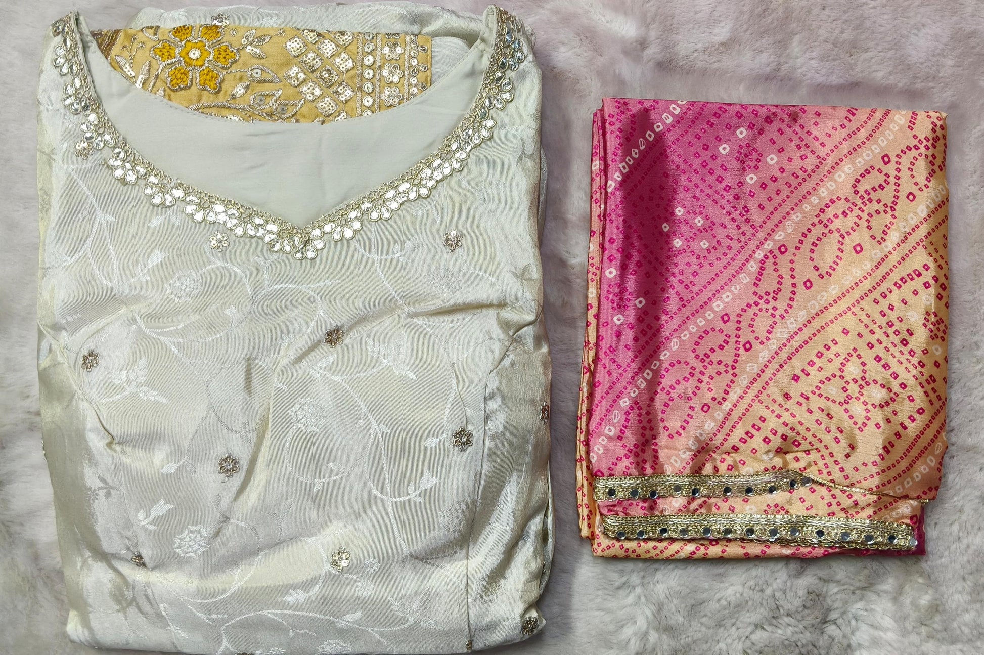 ( FRONT AND BACK EMBROIDERED WITH BANDHANI DUPATTA )