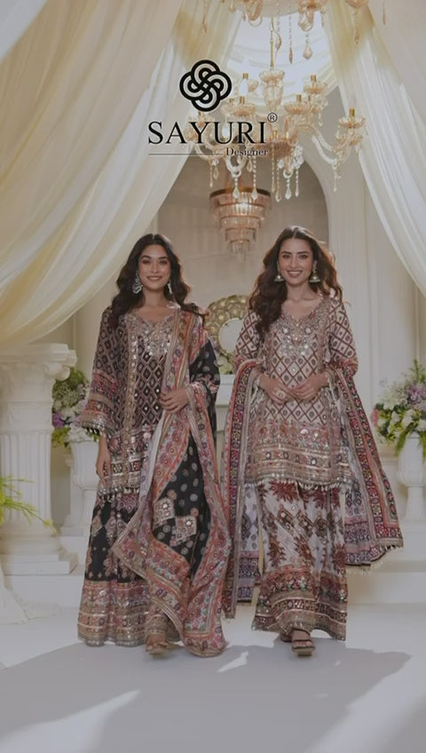 LATEST TRENDY NATURAL CREPE PRINTED TOP AND PLAZZO WITH HAND AARI WORK