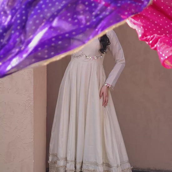 Vintage Real Mirror Anarkali Gown with Dupatta